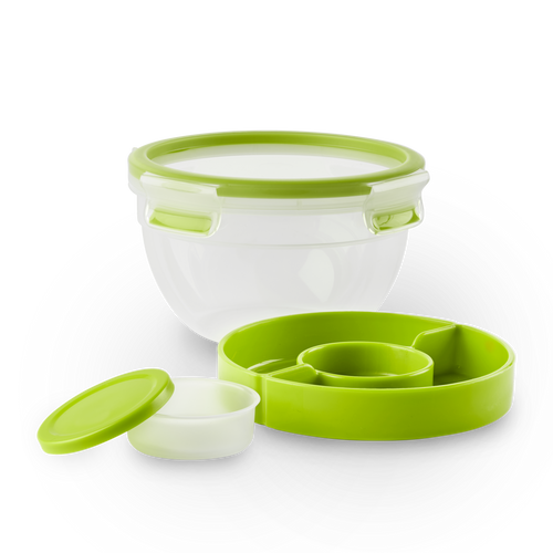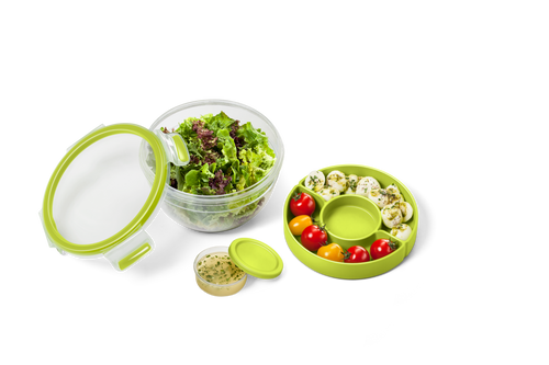 Ανακαλύψτε τη έξυπνη λύση για σαλάτα εν κινήσει, με το Masterseal To Go Salad Box Food Container—την υγιεινή λύση αποθήκευσης τροφίμων που διατηρεί το φαγητό φρέσκο χάρη στην σφραγίδα φρεσκάδας του! Τα έξυπνα ένθετά του διατηρούν ξεχωριστά τα topping και τη σάλτσα, ενώ η στερεά σφραγίδα και το καπάκι του εξασφαλίζουν ότι δεν υπάρχουν κενά και συνεπώς δεν δημιουργούνται μικρόβια—για φρέσκια, τραγανή σαλάτα εν κινήσει. Αυτό το πλαστικό δοχείο αποθήκευσης είναι επίσης στεγανό για ασφαλή μεταφορά, καθώς και κατάλληλο για μικροκύματα και ανθεκτικό στον παγετό για ευέλικτη χρήση πέρα από τη σαλάτα! Επιπλέον, είναι ασφαλές για πλυντήριο πιάτων για εύκολο καθαρισμό και χωρίς BPA για απόλυτη ηρεμία.