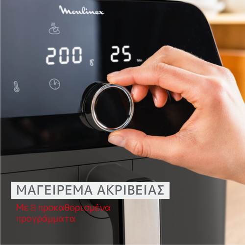 Επιπλέον, αυτή η εύχρηστη φριτέζα χωρίς λάδι είναι εξοπλισμένη με 8 προκαθορισμένα προγράμματα που σας βοηθούν να μαγειρέψετε μια μεγάλη ποικιλία ισορροπημένων και νόστιμων καθημερινών γευμάτων στην εντέλεια. Επιπλέον, έχει χαμηλή κατανάλωση ενέργειας και καθαρίζεται εύκολα.