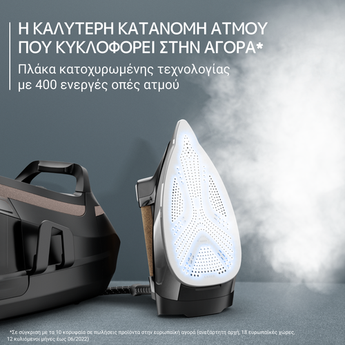 *σε σύγκριση με το σύστημα σιδερώματος Perfect Steam Pro **σε σύγκριση με άλλα εργαλεία στην αγορά ***σε σύγκριση με τη λειτουργία boost ****Σε σύγκριση με τα κορυφαία σε πωλήσεις προϊόντα στην ευρωπαϊκή αγορά (Ανεξάρτητα δεδομένα πωλήσεων της μάρκας – 18 ευρωπαϊκές χώρες, 12 συναπτοί μήνες έως 06/2022)