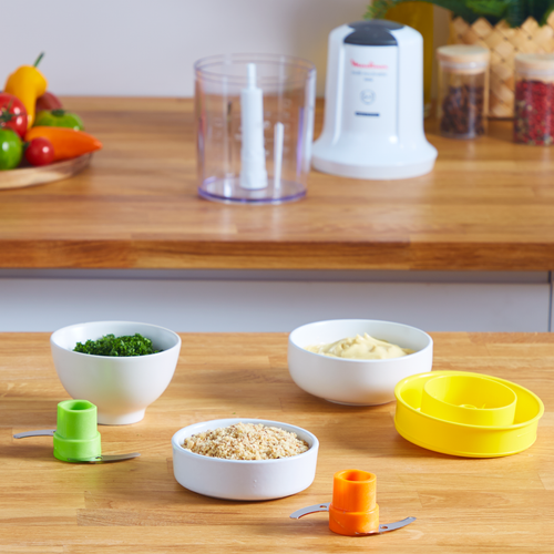 Χάρη στις ειδικές λεπίδες του, σας προσφέρει το επιθυμητό αποτέλεσμα στη στιγμή: οι κοφτερές λεπίδες έχουν εξαιρετικά αποτελέσματα σε μυρωδικά, λαχανικά και κρέας, ενώ οι οδοντωτές λεπίδες, σε συνδυασμό με το πανίσχυρο μοτέρ των 500W, έχουν σχεδιαστεί για υψηλή απόδοση που διαρκεί, σε σκληρά υλικά, όπως κόκκους καφέ και πάγο. Επιπλέον, με το εξάρτημα για σάλτσες μπορείτε να φτιάχνετε λαχταριστές, σπιτικές σάλτσες, όπως μαγιονέζα. Ο μίνι κόφτης Multi moulinette είναι πανεύκολος στη χρήση, χάρη στο απλό σύστημα πίεσης που διαθέτει, και πολύ πρακτικός, χάρη στην αντιολισθητική του βάση 2-σε-1 που είναι και καπάκι φύλαξης. Ο πολυκόπτης πλένεται στο πλυντήριο πιάτων και καθαρίζεται εύκολα χάρη στις αφαιρούμενες λεπίδες. Χάρη στο μικρό του μέγεθος, αυτός ο μίνι πολυκόπτης αποθηκεύεται πανεύκολα, καθώς όλα τα εξαρτήματα χωράνε στον κάδο και συνοδεύεται από σύστημα αποθήκευσης καλωδίου. Το Multi Moulinette κατασκευάζεται στη Γαλλία και έχει εγγύηση επισκευής για 15 χρόνια