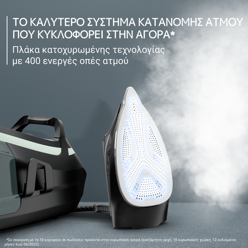 *σε σύγκριση με το σύστημα σιδερώματος Perfect Steam Pro **σε σύγκριση με άλλα εργαλεία στην αγορά ***σε σύγκριση με τη λειτουργία boost ****Σε σύγκριση με τα κορυφαία σε πωλήσεις προϊόντα στην ευρωπαϊκή αγορά (Ανεξάρτητα δεδομένα πωλήσεων της μάρκας – 18 ευρωπαϊκές χώρες, 12 συναπτοί μήνες έως 06/2022)