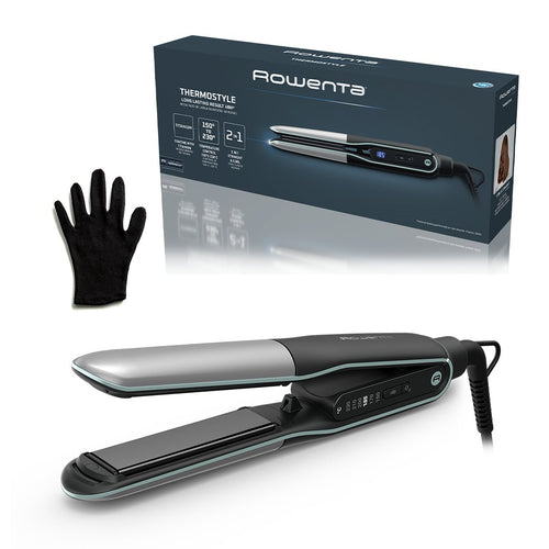 Ανακαλύψτε την ισιωτική Rowenta Thermostyle 2-σε-1 που υπόχεται ευκολία στο ίσιωμα των μαλλιών ή στη δημιουργία μπουκλών. Δημιουργήστε 40% πιο ελαστικές σε κίνηση μπούκλες με απόλυτη ευκολία, χάρη στην ιδανική κατανομή θερμότητας. Προσθέστε επιπλέον λίγη λάμψη στα χτενίσματά σας με το σύστημα ιόντων και την κεραμική επίστρωση.
